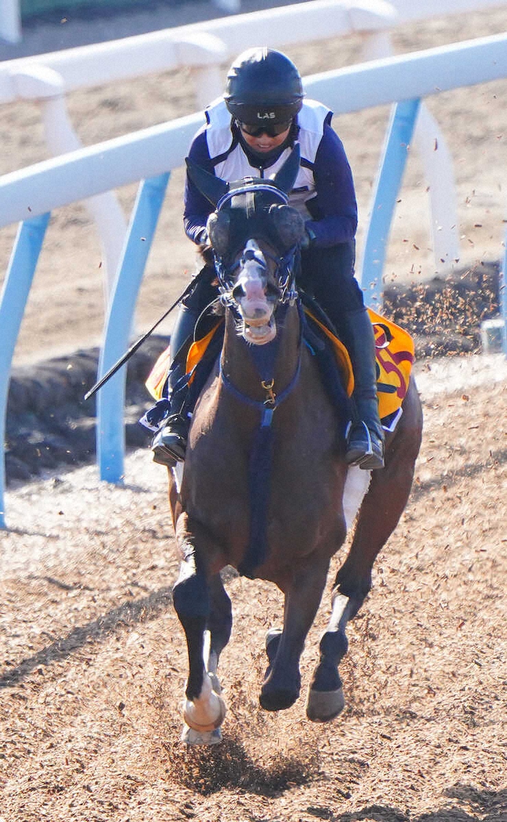 果たせるか――。Wコースで単走で発進し、あふれんばかりの前進気勢でピッチを上げる。指揮官の見立て通り、掛かり気味で頭も上げて見栄えは良くない。それでも、だ。脚色は全く衰えず、気合をつけた1F付近でグンと伸びた。6F83秒1(5F67秒5)〜1F11秒9。5Fもほぼ想定通りなら1Fは合格ラインの“11秒台”を計時した。