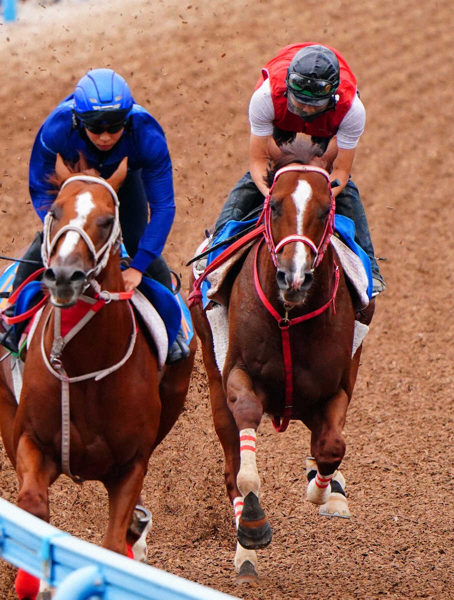 併せで追い切るウインマーベル(右)(撮影・村上 大輔)
