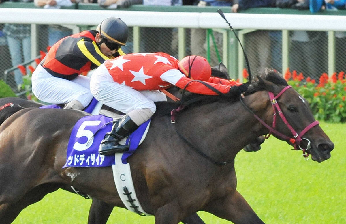 極限まで磨き上げたレッドディザイアの決め手がうなりを上げた。残り200メートルで先頭。四位騎手の左ムチに応えて伸びた。ブエナビスタが迫る。だが踏ん張る。ゴール前、レッドディザイアが鼻差、踏ん張り抜いていた。