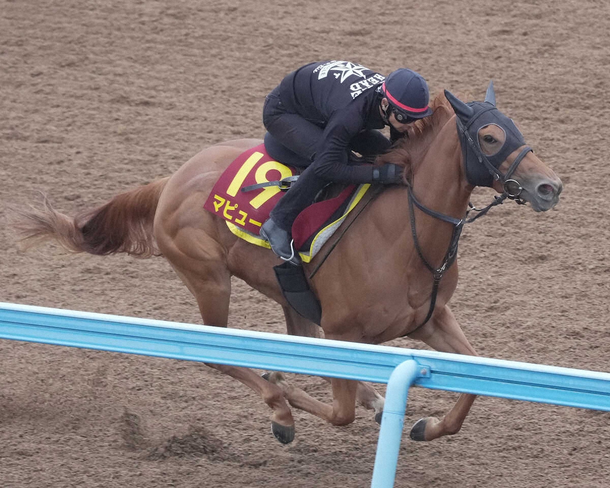 ウッドチップコースで追い切るマピュース(撮影・郡司 修)