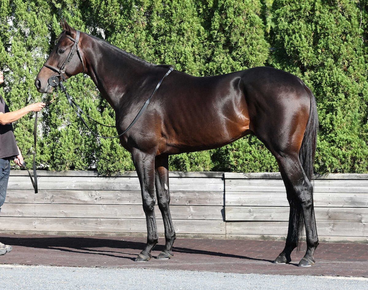 アカ抜けた馬体。前走はアバラが見えるほど細めに映った腹もふっくらしています。首の毛が少し長く見えるが、好仕上がり。