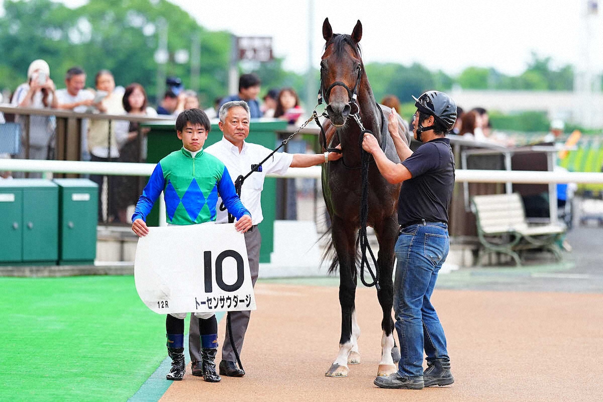 24年6月23日、トーセンサウダージとのコンビで東京12Rを制した佐藤翔馬(左)