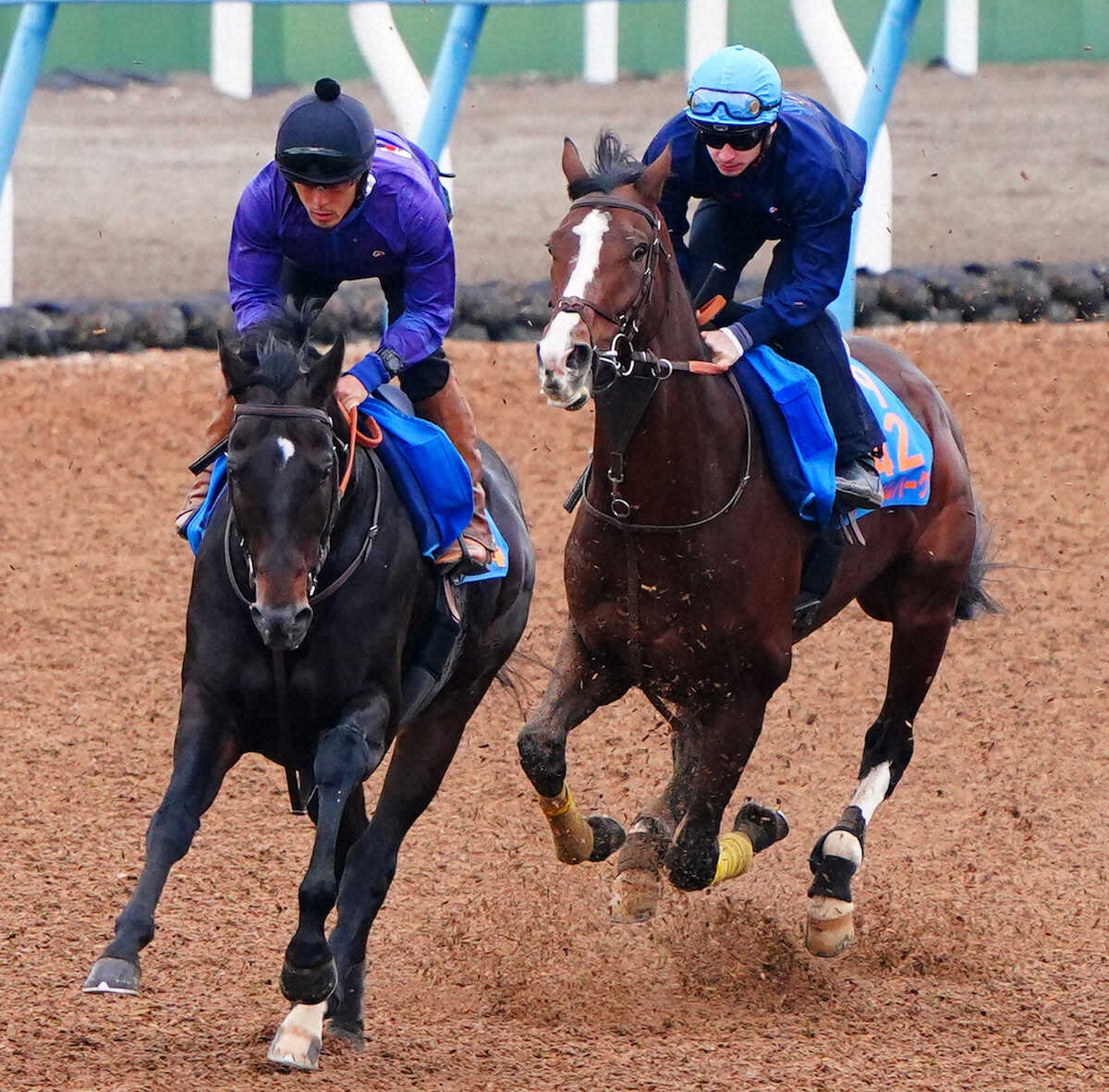 田中博師は「隣で乗っていた助手が“(喉から)音は鳴っていなかった”と言っていた。そこは良かった」と安堵(あんど)。それでも「この馬の良いところである荒々しさがない」と慎重な姿勢も見せた。初コンビの鞍上は「乗りやすかった。過去のレース映像を見たが、前走より状態は良いと思う」と好感触。仏の名手を背に、重賞2勝の実績馬が約2年ぶりの復活Vを狙う。