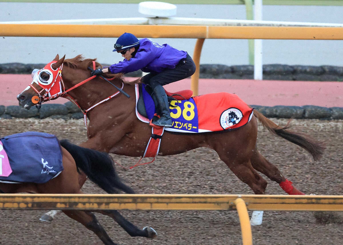 CWコースにて坂井瑠星騎手を背に追いきるシンエンペラー(撮影・中辻 颯太)