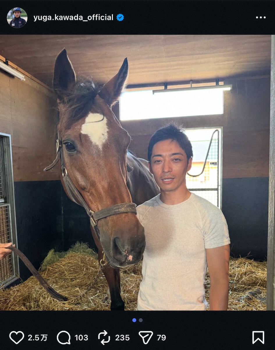 JRA騎手の川田将雅(40)が28日までに自身のインスタグラムを更新。25日に急死した12年牝馬3冠制覇を含む国内外でG1・7勝のジェンティルドンナを追悼した。