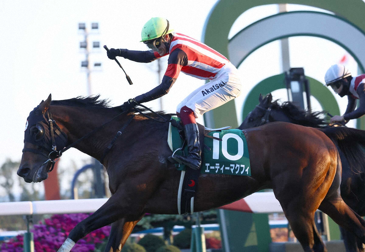 ゴールした瞬間、馬上で握りしめた右拳に喜びがこもっていた。エーティーマクフィが直線外から鮮やかに差し切り、重賞初制覇。勝利に導いた富田が検量室前に引き揚げてくると、出迎えた武英師から頭をなでられ、称えられた。鞍上は「先生(武英師)から“最後は馬の力を信じて”と言って送り出してもらった。北海道で勝っていた(藤岡)佑介さんからも話を聞いていたし、チームで勝てた勝利。みんなで喜びたい」とかみしめた。