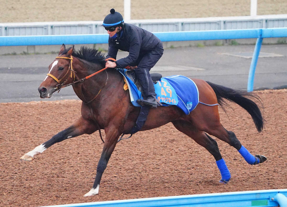 宝塚記念5着以来、約半年ぶりの復帰戦となるチャックネイト。最終追いはWコース単走で4F51秒9〜1F12秒0。馬なりでサッと流した程度だが、動きは軽快で久々を感じさせない。