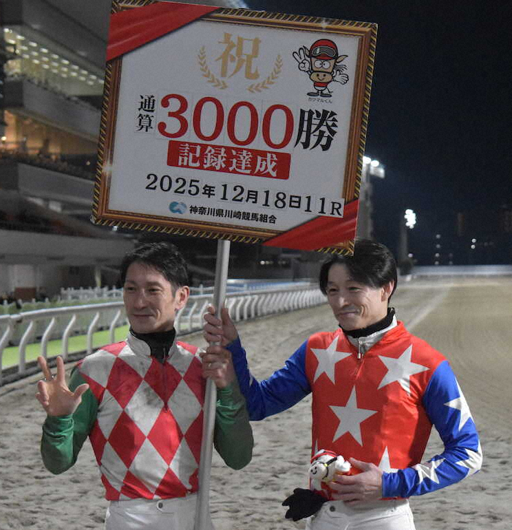 御神本訓史(44=大井)が18日、川崎11Rのラティサワーで地方競馬通算3000勝を達成した。99年の初騎乗から1万7086戦目。歴代39人目、現役では13人目の快挙となった。