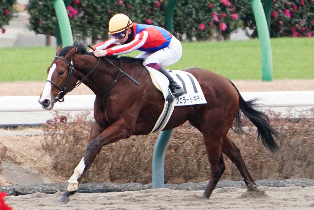 中山6R・2歳新馬戦(ダート1200メートル)は積極的に先手を奪った2番人気ジェラートキティ(牝=嘉藤、父ディスクリートキャット)が1分11秒9の好時計で逃げ切った。