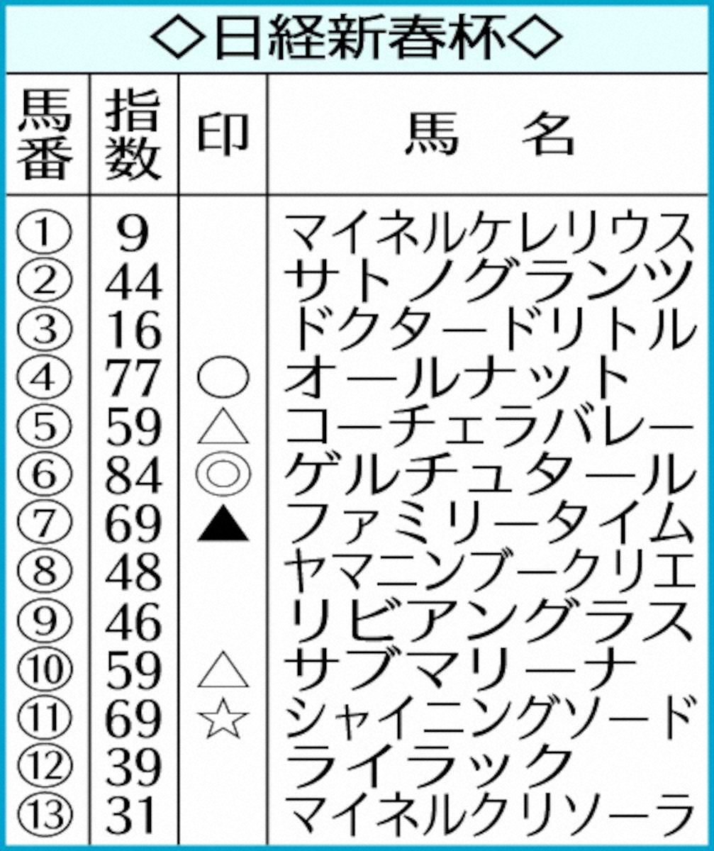京都メインの日経新春杯はゲルチュタールを1位指名。指数84は2位に7ポイント差。難解なハンデG2だが、AIの見立ては“堅軸”だ。