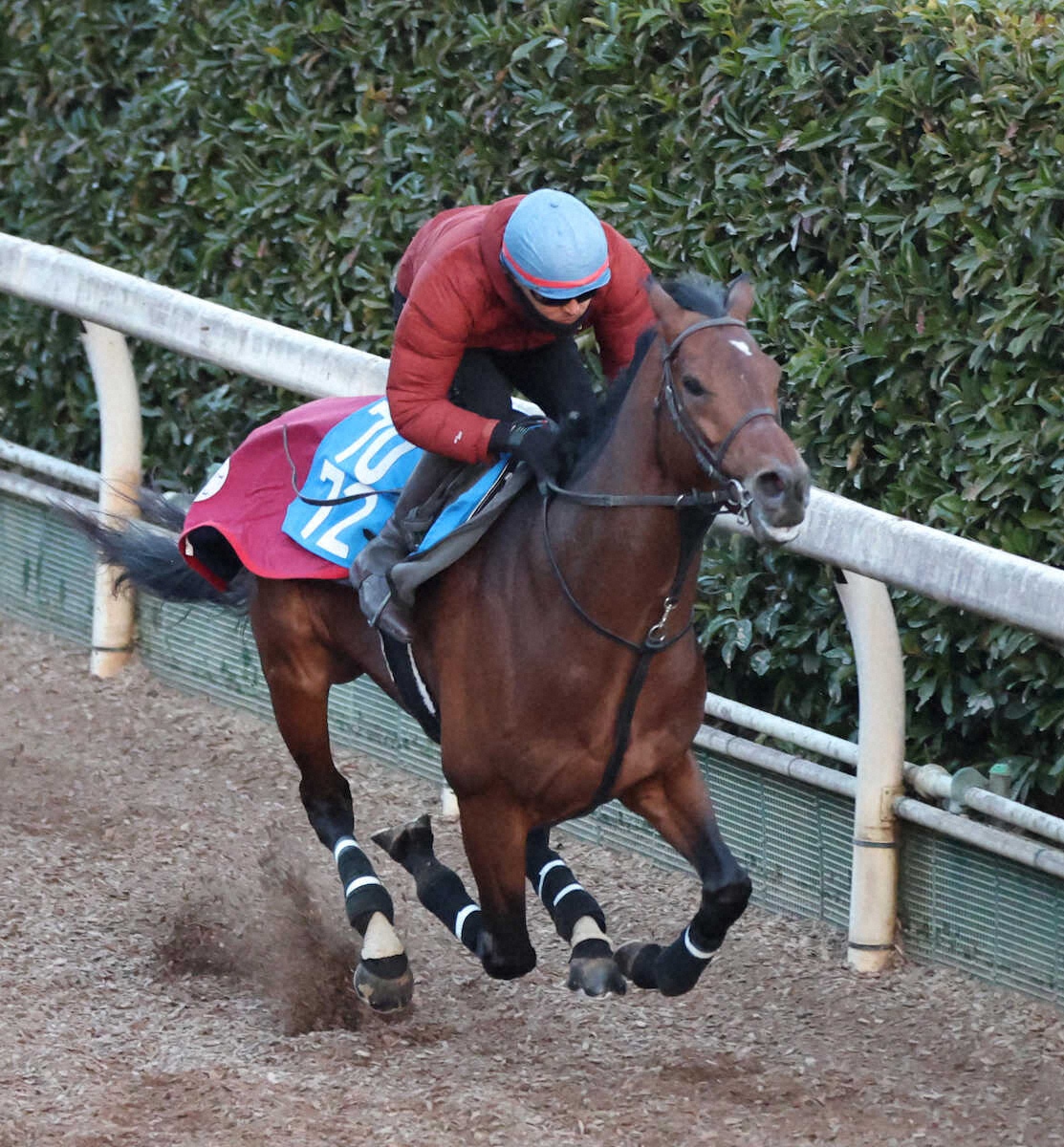 <日経新春杯・追い切り>坂路を単走で追い切るシャイニングソード(撮影・中辻 颯太)
