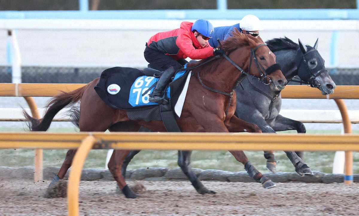 時計は6F84秒2〜1F11秒5。小林師は「先週に引き続いてジョッキーが乗り、凄く良かったです。今朝はしっかりやろうという指示通り、最後まで動けていました」と満足げ。ここ2走は重賞で2着続き。「仕上がりとしては言うことない。今年はこの馬にとって輝ける年にしたい」と意気込んだ。