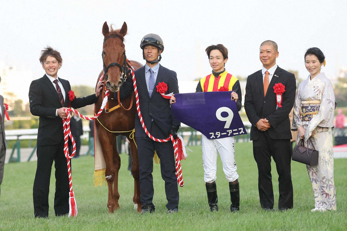 昨年、阪神JFを制したスターアニスと高野師(右から2人目)、鞍上・松山(同3人目)