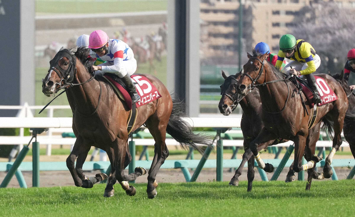 天皇賞・春に向けて大事な一戦、G2「第74回日経賞」が中山競馬場(芝2500メートル)で行われ、4番人気マイユニバース(牡4=武幸、父レイデオロ)が外から鮮やかに差し切り勝ち。重賞初勝利をマークした。