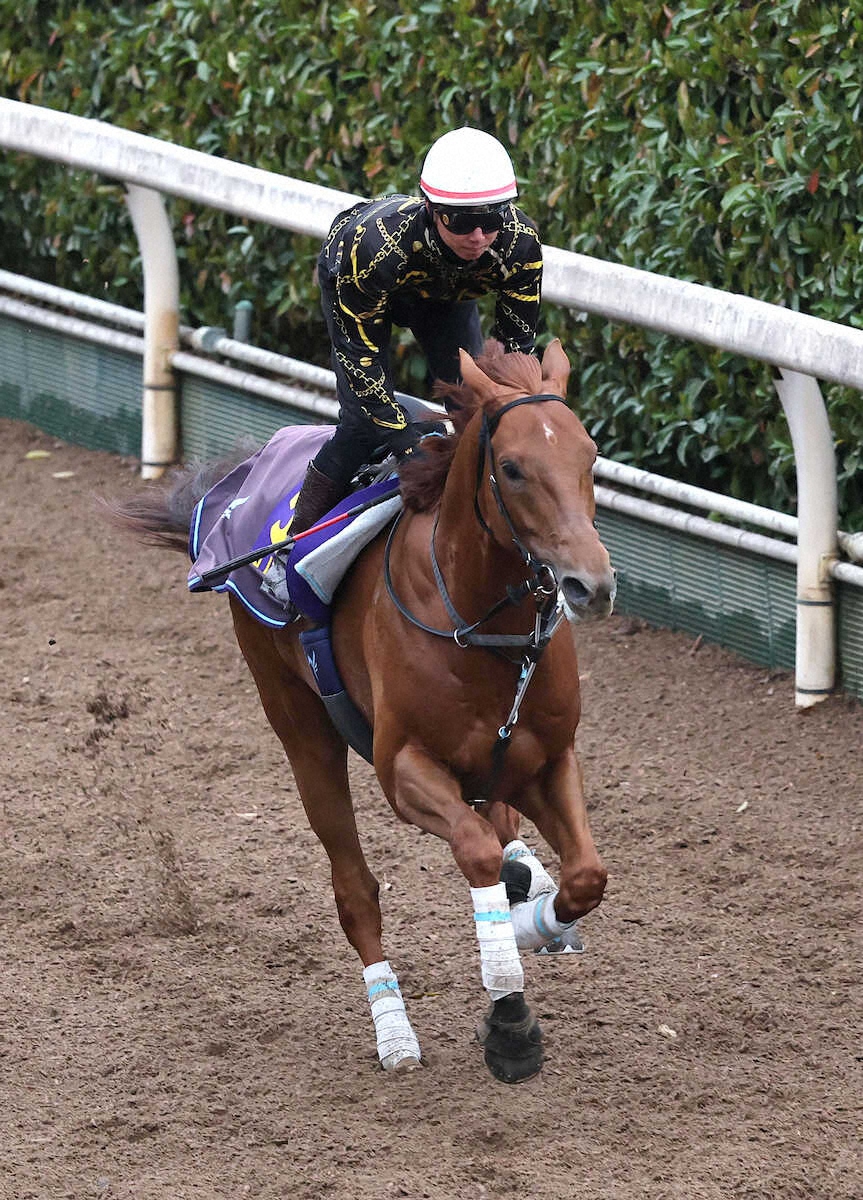 連日の雨で湿ったコンディションでも全くブレない、低重心のフォーム。時計は4F54秒9〜1F12秒7と決して目立たないが、楽な手応えで終始オーラを漂わせた。手綱を取った指揮官は「水曜日の追い切りというほど強い意識を持たず、いかに集中力を保ちつつ、気持ちを抑えられるかという軽い追い切りです」と予定通りの内容を強調する。