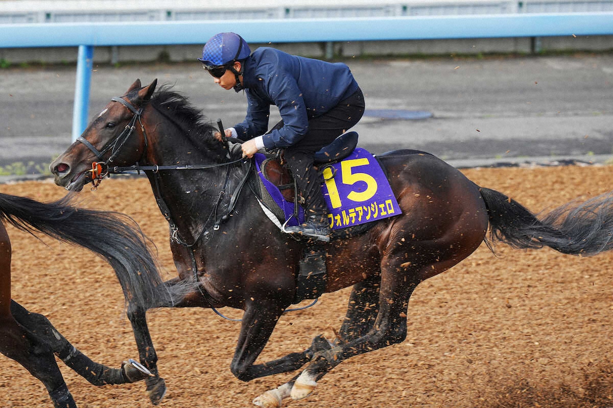 荻野を背にWコースを3頭併せで追い切ったフォルテアンジェロ(撮影・河野 光希)